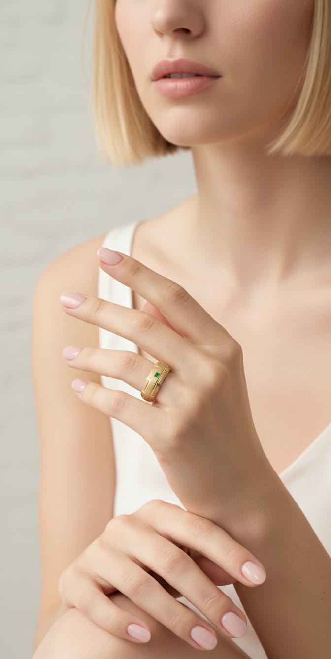argolla matrimonial dama oro de 18 k, con esmeralda natural