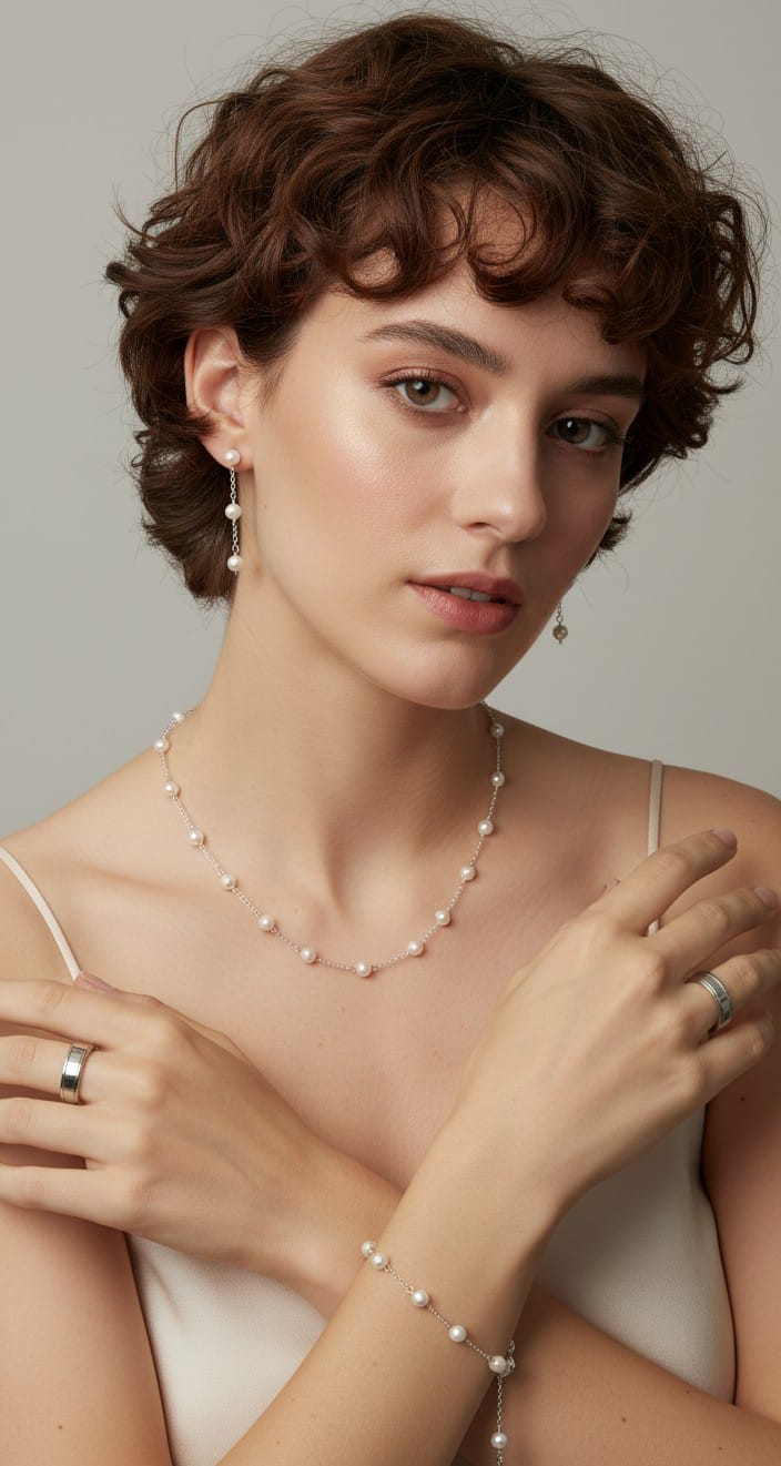 Juego en plata 925 com perlas, ideal para novias compuesto por cadea dije y aretes